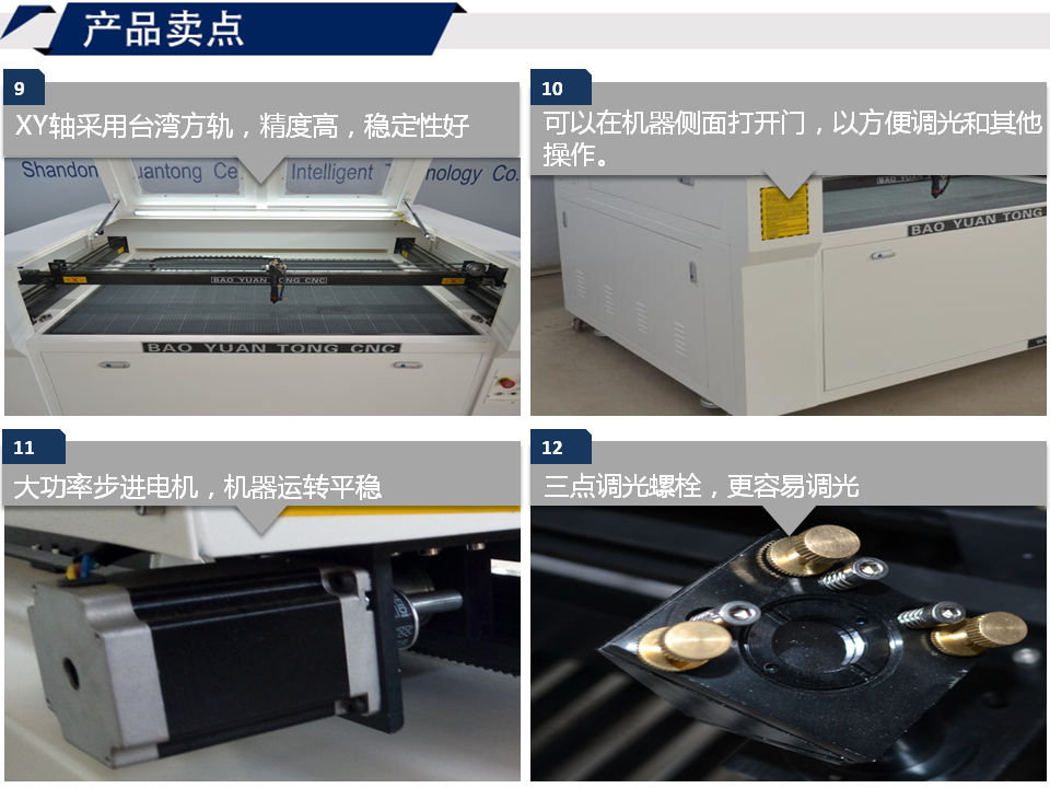 3.采用三條進口直線導軌,3M同步帶和使用美國芯片的驅(qū)動器,配合大扭距同步電機,使加工物的切割精度和曲線更加精準平滑;