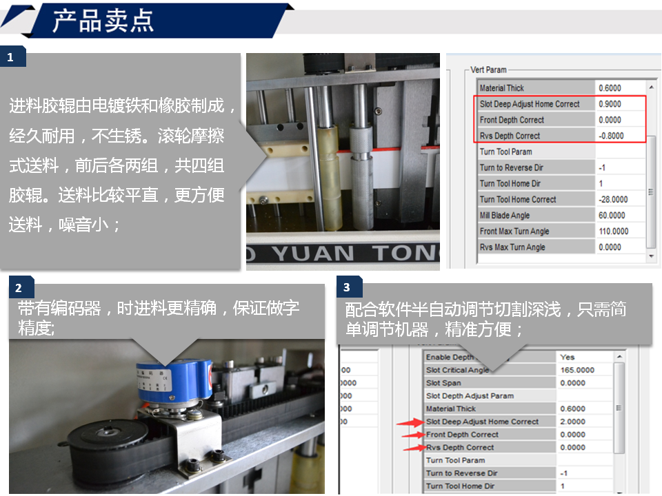 設(shè)備特點(diǎn)介紹:1.調(diào)試簡單,在更換材料后,只需更改參數(shù)便可以調(diào)節(jié)切割深度,更簡單,節(jié)約時(shí)間和材料;2.編碼器分辨率高,保證尺寸任何情況下不變;3.進(jìn)料由2個(gè)齒輪傳動(dòng)進(jìn)行...
