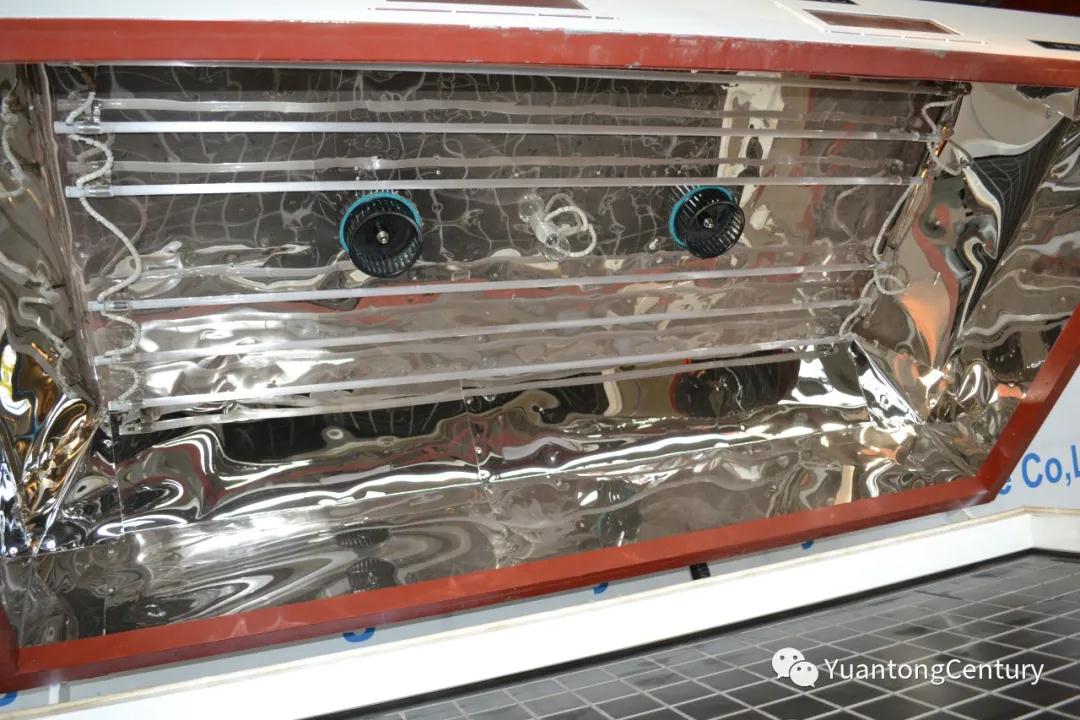1.加溫箱自動開啟,增加上加溫箱 ,下加溫箱帶有熱風(fēng)循環(huán)系統(tǒng)確保熱量覆蓋整個(gè)工件表面,且內(nèi)部溫度公差在±2度之內(nèi)。